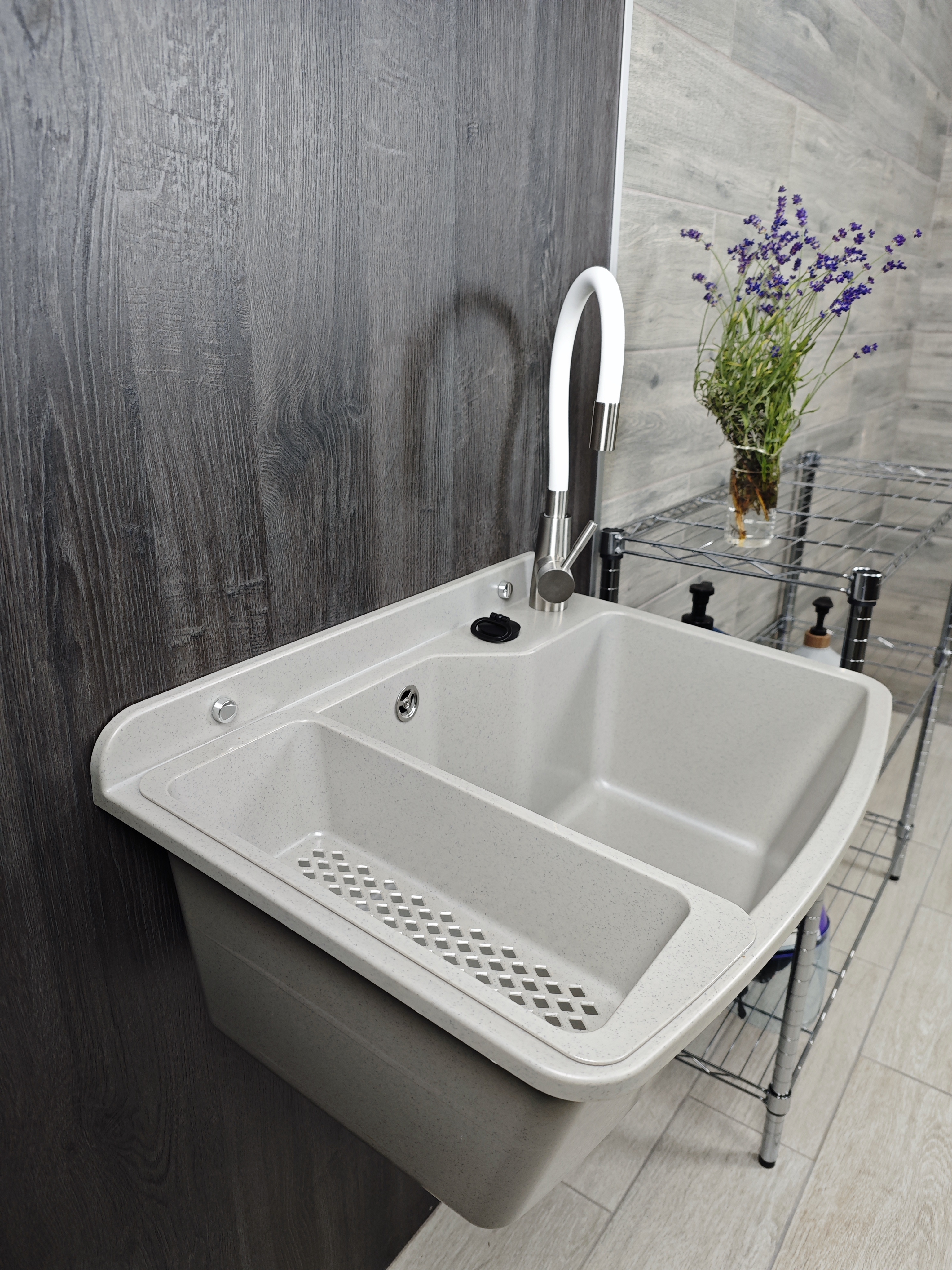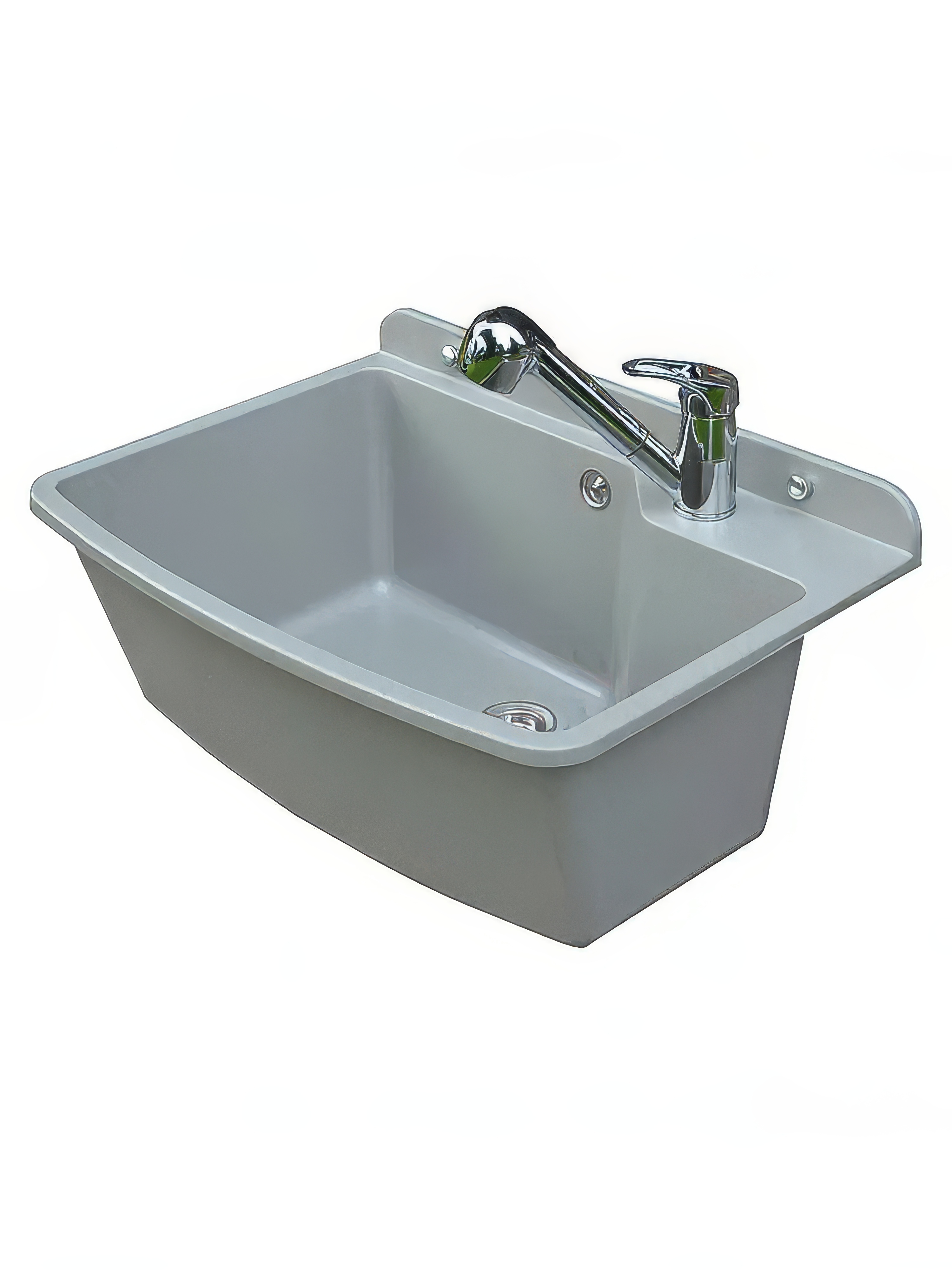 Пластиковая техническая раковина c каплесборником MAXIMUS GREY PLUS