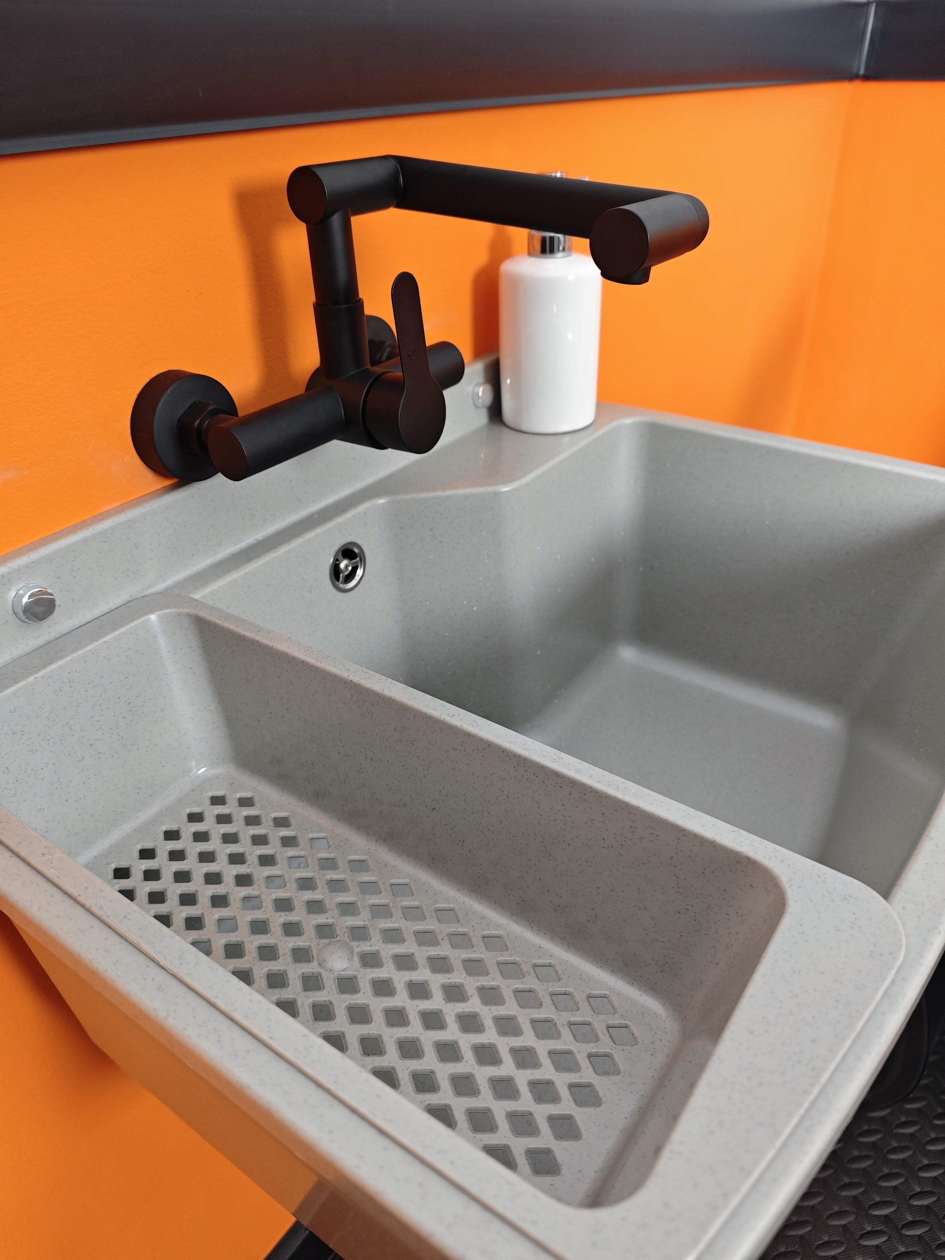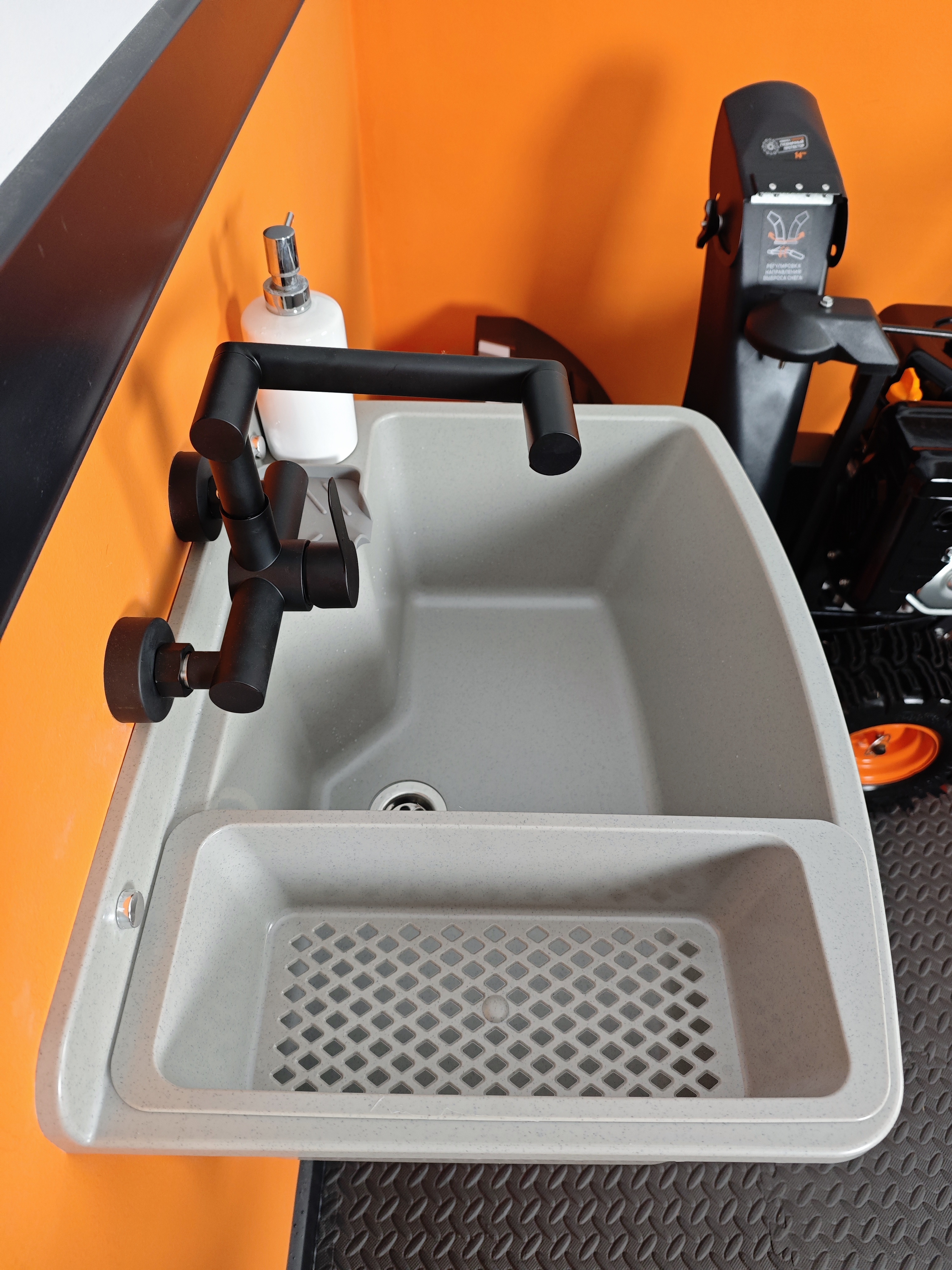 Нанесена разметка для удобного монтажа смесителя и дозатора жидкого мыла